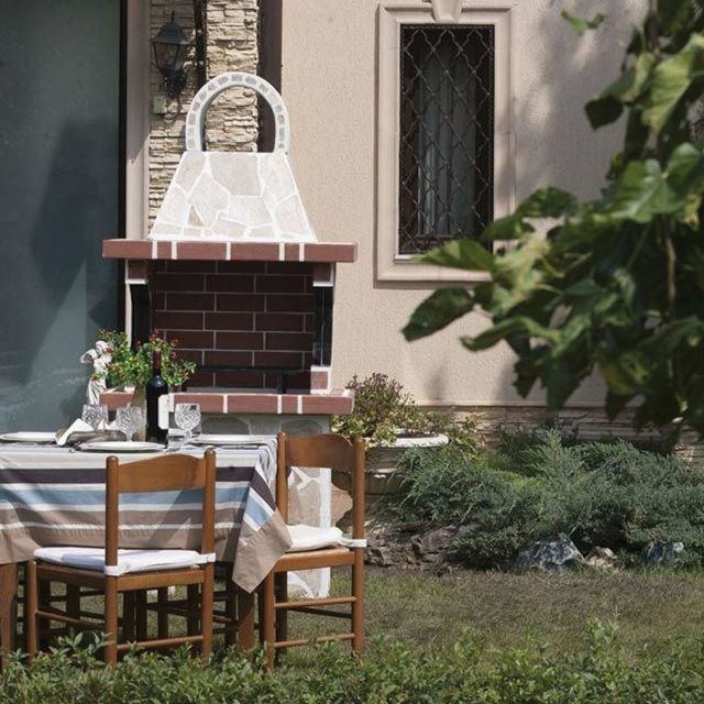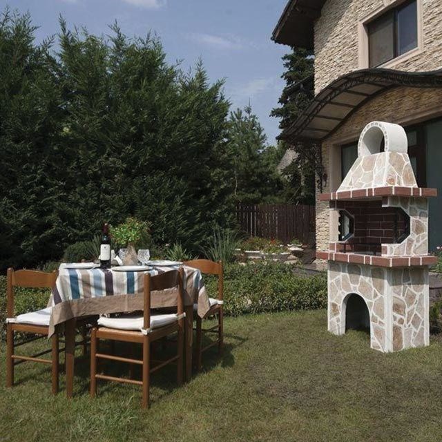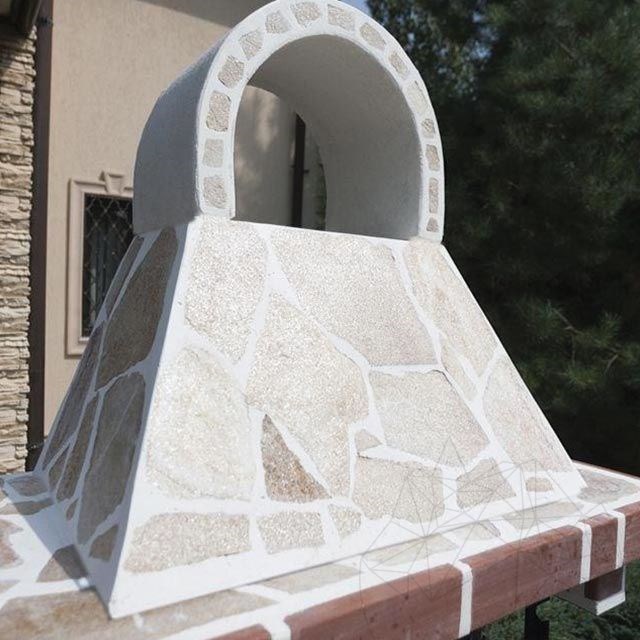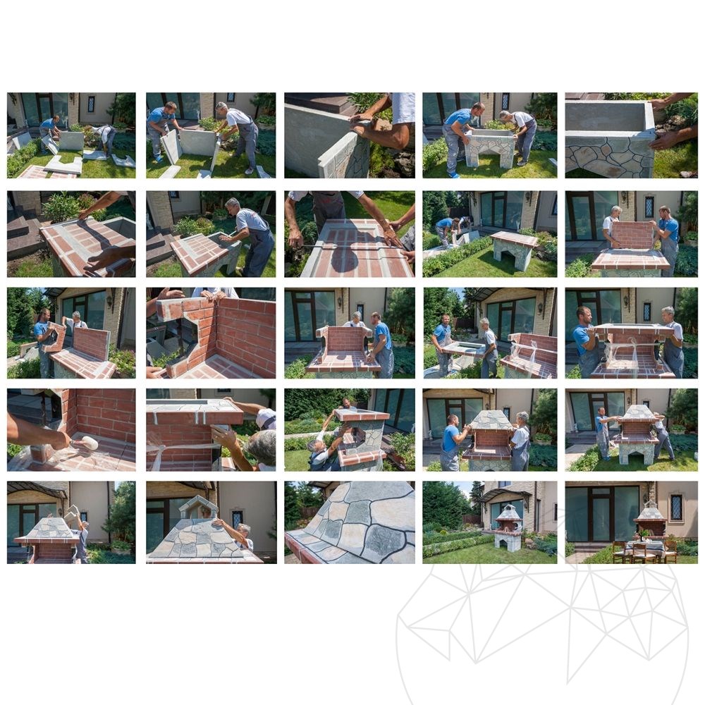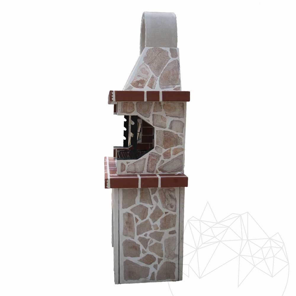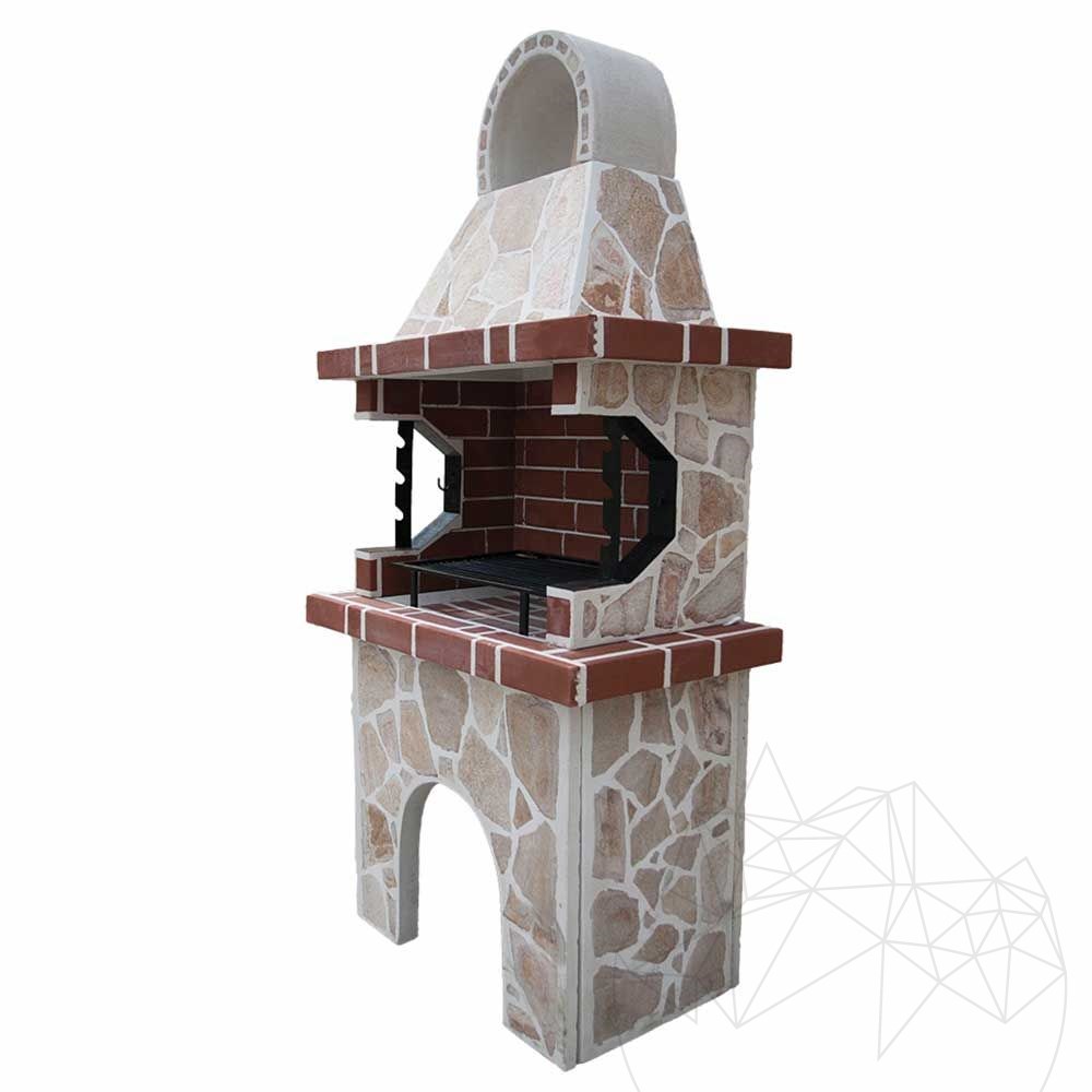 Der Grill ist mit einer feuerfesten Ziegelkuppel ausgestattet, die mit thermostabilem Klebstoff verklebt ist, und mit einer Kammer aus Stahlbetonplatten und Kunstziegeln; es ist außen mit Naturstein verkleidet. Es wiegt 650 kg und ist in kleinen Größen erhältlich – 210/100/60 cm. Die Grills werden auf Holzpaletten verpackt und geliefert und enthalten auch ein LEGO-ähnliches Installationsschema, so dass der gesamte Montageprozess zwischen 2 und 8 Stunden dauert.