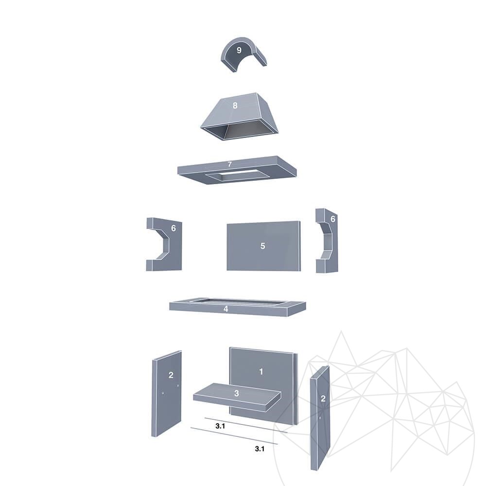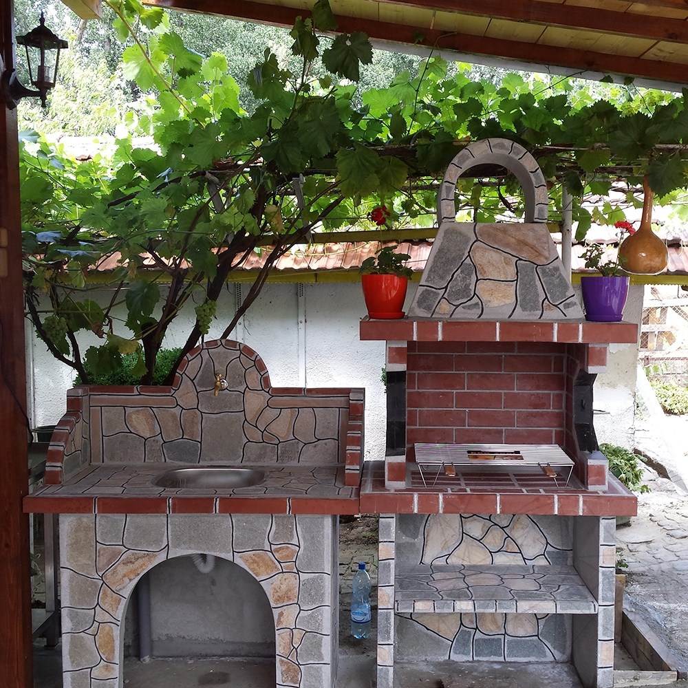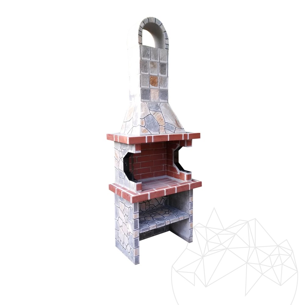 Dieser kleine Grill ist ideal für kleine Räume, Abende mit Freunden und Kochshows. Dies ist ein sehr langlebiges Produkt, das aus Stahlbetonplatten, dekorativen Ziegeln und mit Schiefer verkleidet ist. Für eine bessere Verwaltung und einen einfachen Zugang ist der Grill mit einem Regal ausgestattet, das mit polygonalem Stein verkleidet ist. Um Ihnen die Arbeit noch einfacher zu machen, wird dieser Grill auf Europaletten geliefert, wobei eine "LEGO"-artige Installationszeichnung angebracht ist. Alles, was Sie tun müssen, ist, die Schritte zum Zusammenbau des Grills zu befolgen. Wenn der Klebstoff getrocknet ist (3-5 Stunden), ist der Grill einsatzbereit. Ein zusätzliches Merkmal ist das Metallgitter, das im Verkaufspaket enthalten ist.