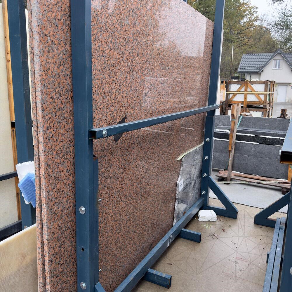 Anwendungen: Maple Red-Granit wird als Baumaterial, für Arbeitsplatten, Dekorationen und vertikale Verkleidungen im Innen- und Außenbereich verwendet. Er kann auch zu Sonderstücken verarbeitet werden. Granit ist ein vulkanisches Intrusivgestein, das durch die langsame Erstarrung von Tiefseemagmen entsteht. Er besteht hauptsächlich aus Feldspat, Quarz und Glimmer. Seine Entstehungsweise bestimmt seine Verwendung als Baumaterial. Die Maple Red-Granitplatte ist groß und poliert. Dank ihrer Dicke von 3 cm eignet sie sich für vielfältige Projekte im öffentlichen Raum.
