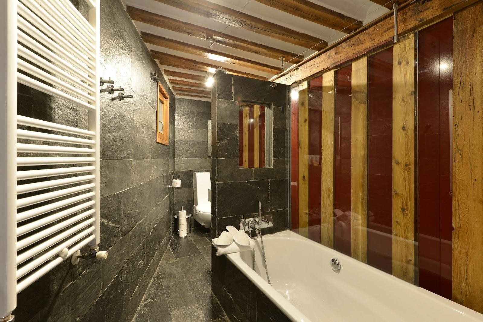 Das Natursteinbadezimmer aus Schiefer weist aufgrund seiner Beschaffenheit eine sehr geringe Rutschgefahr auf und die Oberflächenpflege ist sehr einfach. Ähnlich wie die beiden zuvor genannten Natursteine ​​ist auch Schiefer mit Fußbodenheizungen kompatibel.