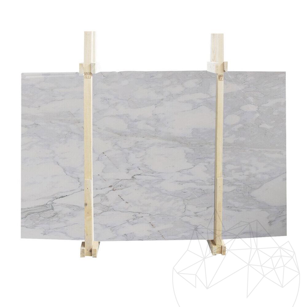 The installation of Calacatta Nuvolato marble slabs should be carried out by professionals to ensure precision and quality. The slabs can be delivered as full pieces or cut to size for an additional cost, according to the required on-site dimensions.