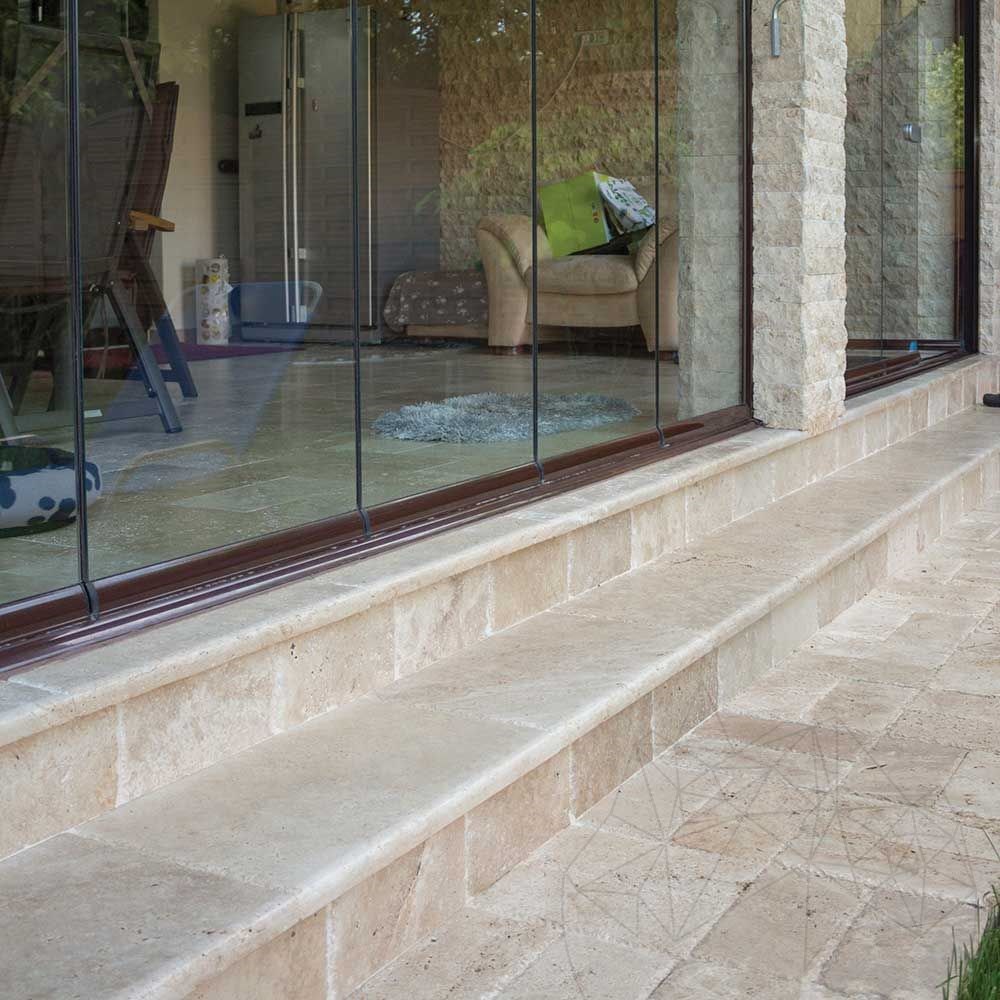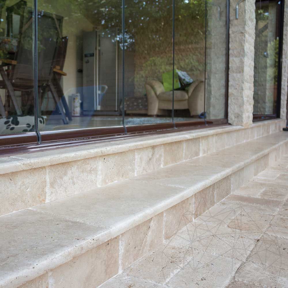 Travertin war schon immer ein Favorit auf dem rumänischen Markt. Dieser klassische, quergeschnittene Travertin mit rutschfester Oberfläche hat eine abgerundete Kante (1 Länge) und eignet sich perfekt für Außentreppen, Fenster...