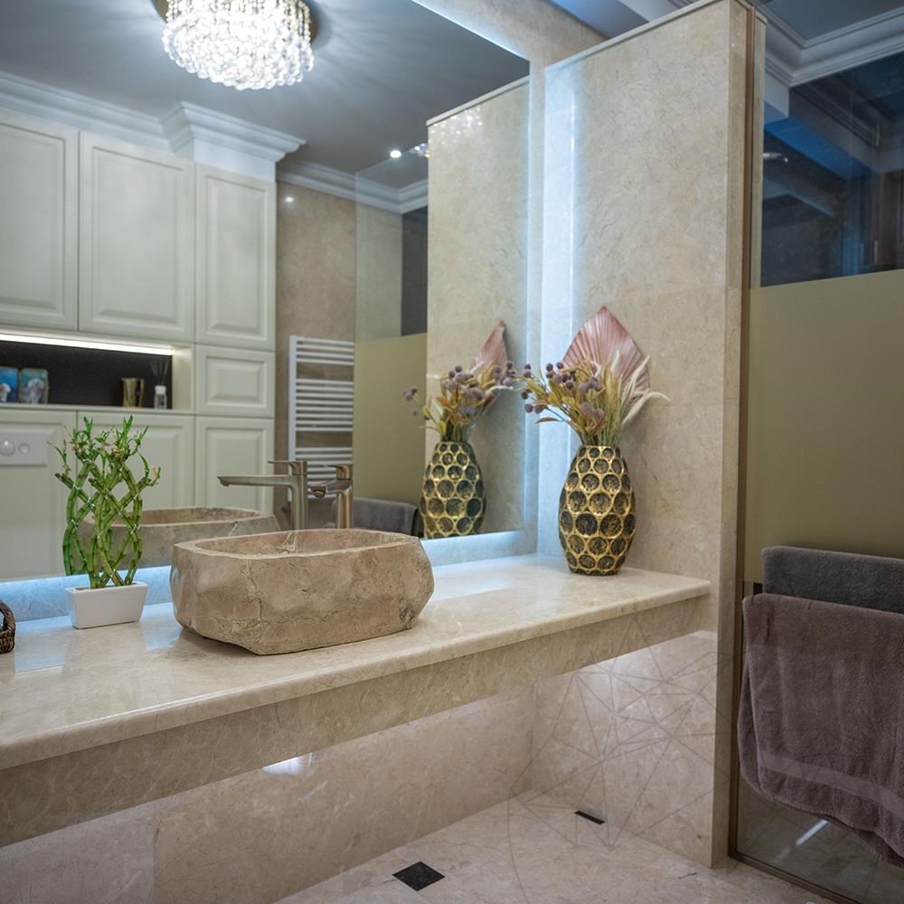 Der Name spricht von selbst! Marmor Crema Royal bedeutet einen prächtigen Stil, eine eindrucksvolle Eleganz. Die neuen polierten Marmorplatten Crema Royal poliert (Maße 250 x 65 x 3 cm) werden eine höherwertige Atmosphäre in jeden Raum bieten und die Dicke von 3 cm wird dem Projekt Volumen schenken und ein Plus an Schönheit durch Massivität hinzufügen. Diese können als Platten verwendet werden oder es können Treppen, Gegentreppen, Fensterbänke und andere speziellen Teile hergestellt werden. Den unkonventionellsten Kunden empfehlen wird senkrechte oder sogar waagrechte Verkleidungen mit Marmorplatten Crema Royal durchzuführen, genau zu den von Lieferanten kommenden Dimensionen. Optische Wirkung – sogar im Außenbereich! - einiger solchen Einrichtungen ist äußerst besonders. Eine solch stilistisches Vorgehen vergrößert das Raumgefühl in großen und mittelgroßen Räume. In kleineren Räume kann eine Platte mit diesen Maßen ein erholsamen chromatischen Akzent bilden, insbesondere in weißen oder braunen Dekors. Die polierten Marmorplatten Crema Royal poliert bedeuten Beständigkeit und Langlebigkeit (vergessen Sie nicht von der 3 cm Dicke!) außer der großen Vielseitigkeit, der Raffiniertheit und der Persönlichkeit die sie vollständig auf allen Projekte aus der sie teilnehmen wird, überträgt. Nachdem das Produkt gekauft wurde, kann sich ein Team von PIATRAONLINE über den Transport an den angegebenen Ort kümmern. Dort, auf Ort und Stelle, kann es aus der Platte (250 x 65 x 3 cm) spezielle Teile gemäß Ihren Spezifikationen/Anweisungen für Treppen, Fensterbänke, Arbeitsplatten etc. schneiden. Auf Wunsch, kann unseres Montageteam auch die Verlegung dieser spezielle Teile aus Naturstein übernehmen. Das Produkt wird leicht und schnell überall landesweit geliefert.