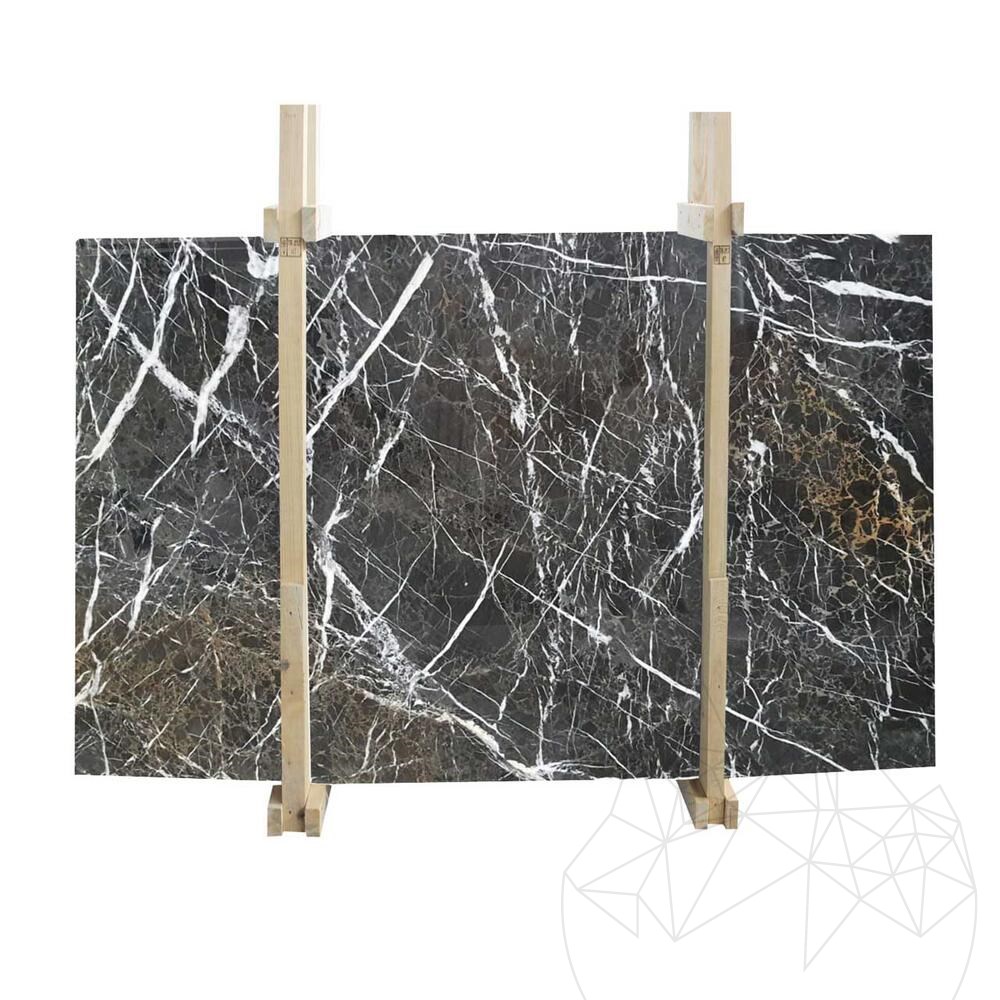 Mit ihrer makellos polierten Oberfläche bringt diese Marmorplatte die natürliche Textur und die intensiven Farbtöne des Spider Black Marble zur Geltung. Dieser bemerkenswerte Naturstein ist bekannt für sein unverwechselbares, spinnenartiges Muster, das ihm einen einzigartigen und sensationellen Charakter verleiht.