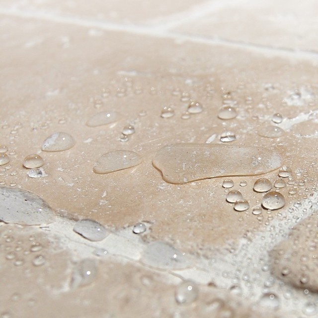 Versiegelte Natursteinfliese – Wassertropfen bleiben auf der Oberfläche