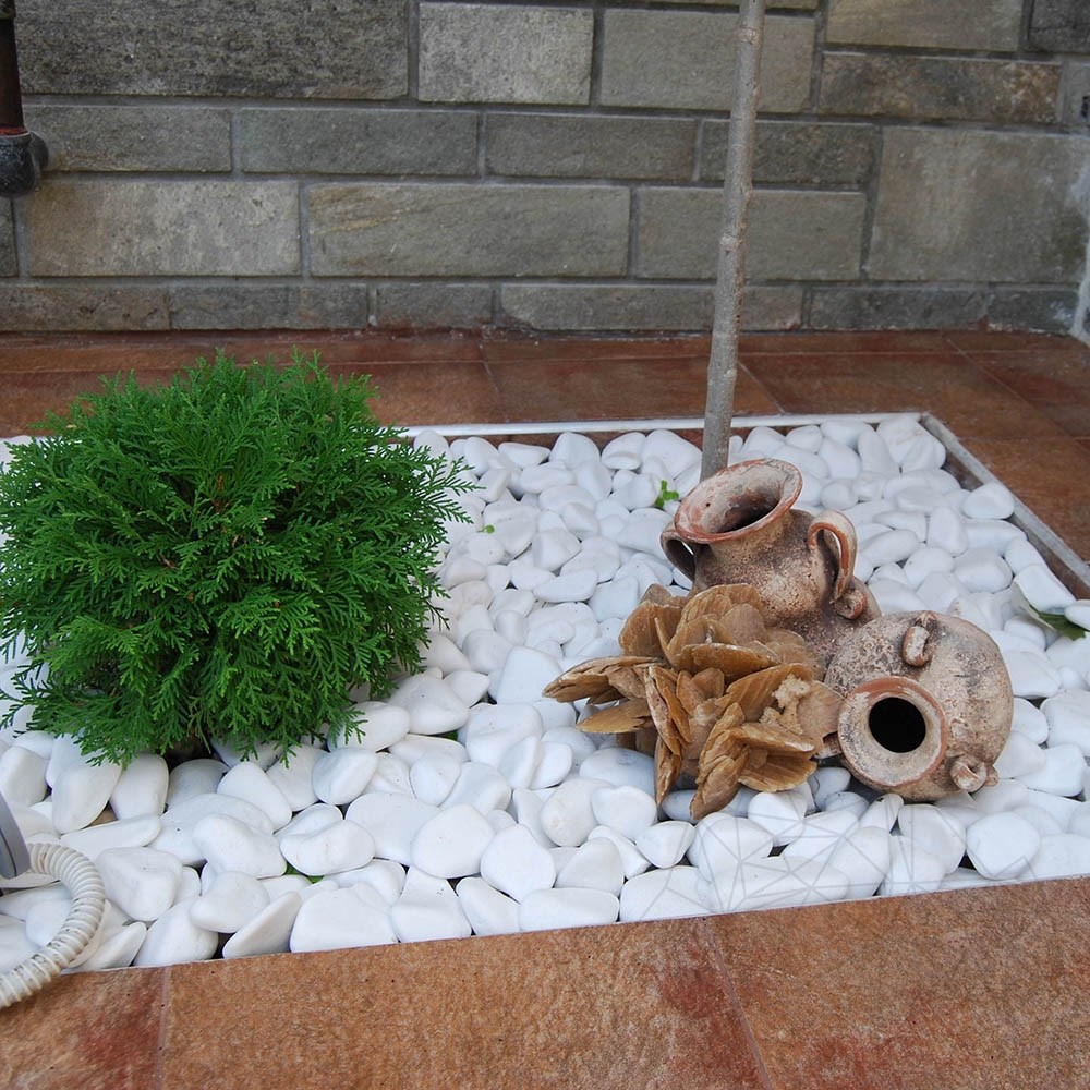 Die Thassos Marmor Kieselsteine sind nicht nur aufgrund ihres ästhetischen Reizes eine hervorragende Wahl. Sie bieten auch eine hohe Langlebigkeit und Pflegeleichtigkeit, was sie zu einer praktischen Lösung für Bereiche mit hohem Fußgängerverkehr macht. Die weiße Farbe der Kieselsteine kann zudem Licht reflektieren und somit zu einer helleren und einladenden Atmosphäre beitragen.