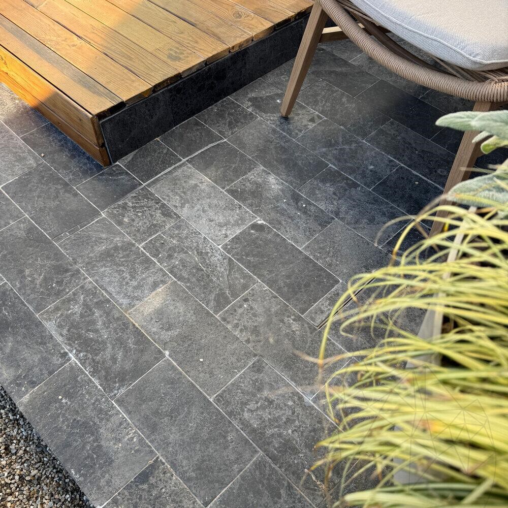 Ceppo Grey Tumbled Marble kann im Freien für Bodenbeläge (überdachte und unbedeckte Terrassen) oder für die Dekoration rund um den Pool verwendet werden. Es wird für stark oder mittelverkehrte Bereiche empfohlen.