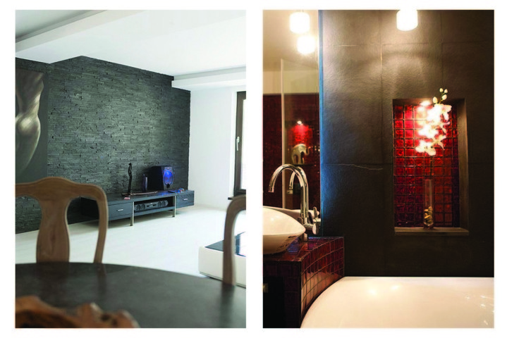 Eine der vielleicht schwierigsten Entscheidungen für ein Raumdekorationsprojekt ist die Bestimmung des Ambientes, das nicht nur komfortabel sein, sondern auch die Persönlichkeit widerspiegeln sollte. Und dieser Trend, vorerst „Fantasy“ genannt, ist leicht regulierbar. Ich meine, zum Beispiel wird eine starre Persönlichkeit in der Lage sein, scharfe chromatische und geometrische Rhythmen mit aggressiven Kontrasten zu wählen: eine mit Mint Green Slate verkleidete Zimmerwand, weiße Möbel oder eine Raumverkleidung (nicht vollständig) mit Noisette Multicolour Riven Slate in Verbindung mit Mint Grüner Schiefer, kontrastiert mit Edelstahlmöbeln mit geschwungenen Linien ... Eine euphorische Persönlichkeit könnte sich für Fantastico Juparana polierten Granit , Onyxplatten oder warum nicht, orientalischen Terrazzo entscheiden, während eine melancholische Person vielleicht eine braune Schiefer-Wandverkleidung oder eine Metaksi-Quarzit-Wandverkleidung ausprobieren könnte