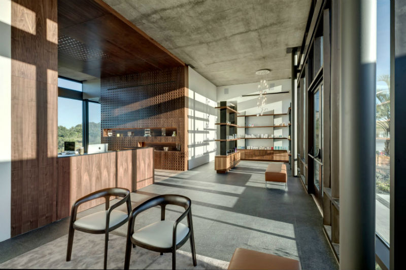 Die Innenausstattung basiert auf großzügigen Räumen, die den Besucher entspannen, aber gleichzeitig ästhetische „Erweiterungen“ der Freiräume rund um das Gebäude bilden. Die Klinik „Westlake Dermatology Marble Falls“ ist ein perfektes Beispiel für die Kombination des Zwecks eines Gebäudes mit der natürlichen Umgebung.
