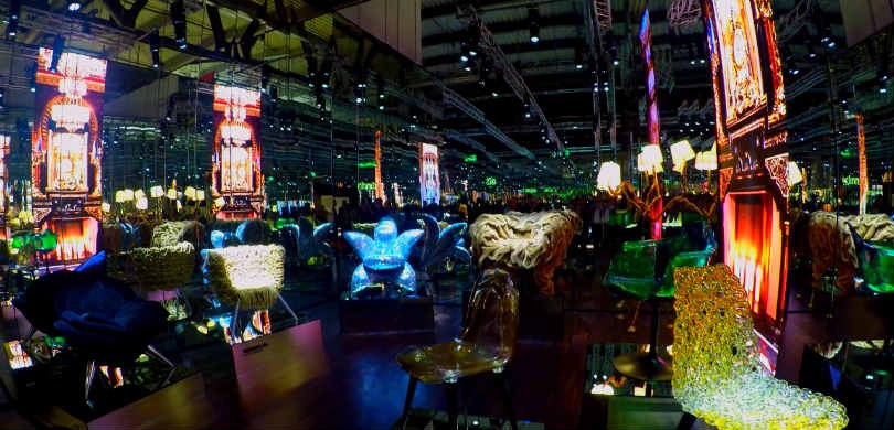 Darüber hinaus ist die Kombination zwischen Vintage und Moderne oder Glanz mit neoklassizistischen Merkmalen das bestimmende Merkmal aller Objekte und Innenarchitekturen, die dieses Jahr in Mailand ausgestellt werden. Neben der Mischung aus geometrischen Strukturen und scheinbar gegensätzlichen Designansätzen war der eklektische Trend im Interior Design für diese neue Saison offensichtlich.