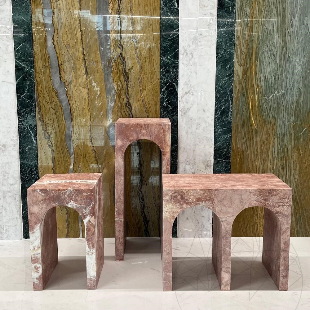 Die kleine Konsole Archy aus opiumrotem Travertin ist mehr als nur ein Möbelstück; sie ist ein Statement von Stil und Raffinesse und verleiht jedem Raum einen Hauch von Eleganz und Charakter.