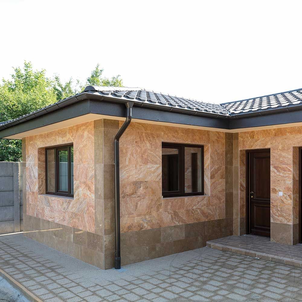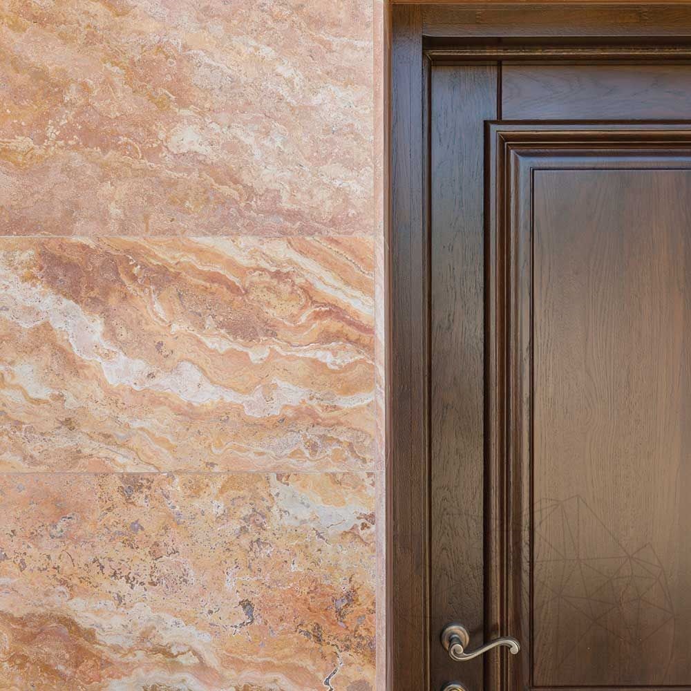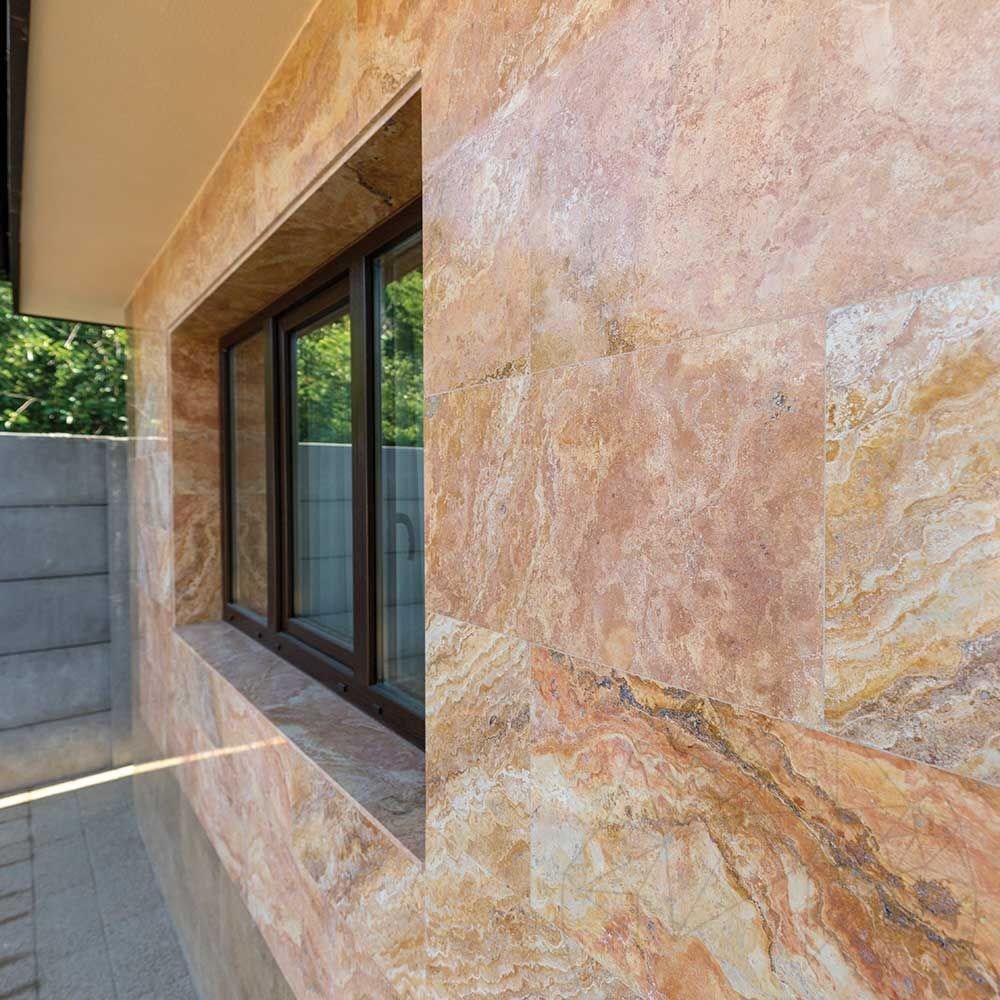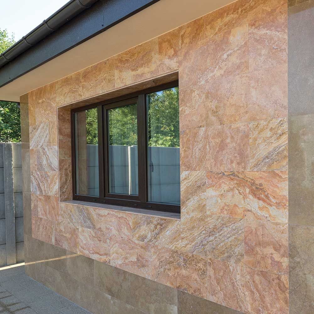 Travertin Peach Cross Cut mit polierten Anstrich ist durch kräftige Farben, wie Feuer, die sowohl die Innen- als auch die Außenprojekte definiert . Dieses Produkt jeden Raum, Bad, Küche, Wohnzimmer, Flur erhellen. Obwohl es eine sehr starke Nuance hat, das Farbenakzent kann fehlen Kann in Verkleidungen von Wände, Kamine und Böden verwendet werden. In der Auβendekorationen, ist es in der Verkleidung von Zäunen, Fassaden, Sockel, Rahmen usw. verwendet.