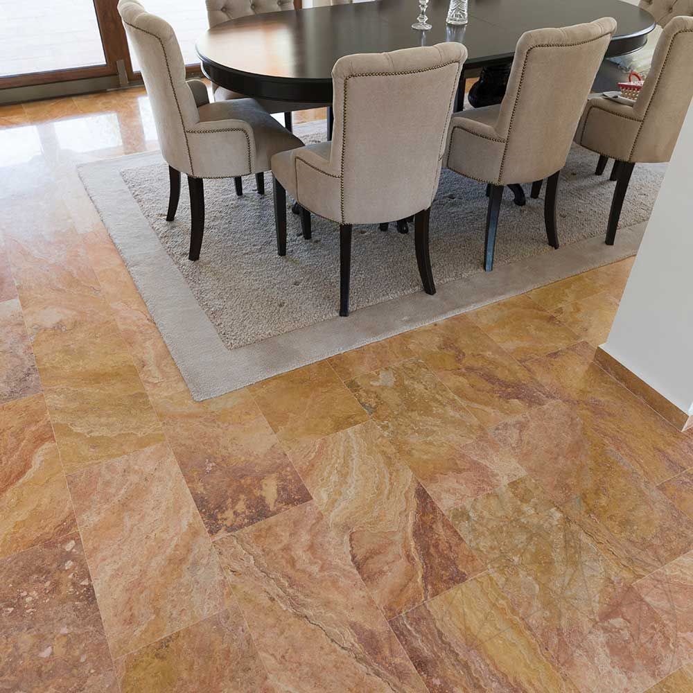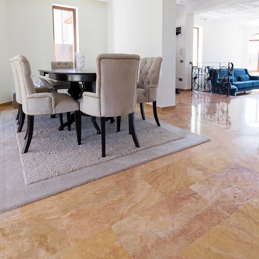 Kurzbeschreibung Verleihen Sie Ihrer Natursteindekoration Eleganz und Wärme. All dies erreichen Sie mit dem polierten Travertin Peach Cross Cut. Die leuchtend orange Farbe dieses Produkts erhellt jeden Raum, von Küchen und Bädern bis hin zu Wohnzimmern oder Fluren. Er kann für Wandverkleidungen, Kamine und Fußböden verwendet werden. Im Außenbereich findet man ihn häufig für Zäune, Tür- und Fensterrahmen, Fassaden, Hausfundamente usw. Die Verlegung ist einfach. Für eine optimale Pflege empfehlen wir die Anwendung farbintensiver Versiegelungen. Dank seiner einzigartigen Optik trifft der polierte Travertin Peach Cross Cut jeden Designgeschmack. Er passt perfekt zum Chic, Art déco, Vintage, Glamour oder modernen Stil.