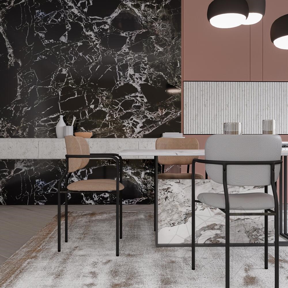 Gewöhnlich erscheint die Platte als der letzte unbearbeitete Ausdruck des Natursteins, die fortschrittlichste Möglichkeit, ihren primitiven Charakter zu bewahren. Was danach geschieht, ist Industrie, aber das Spalten eines kolossalen Blocks in Scheiben bewahrt immer noch den ursprünglichen Sinn des Steins und perpetuiert seine Magie, die in den Millionen von Jahren unbekannter Existenz verschlüsselt ist.