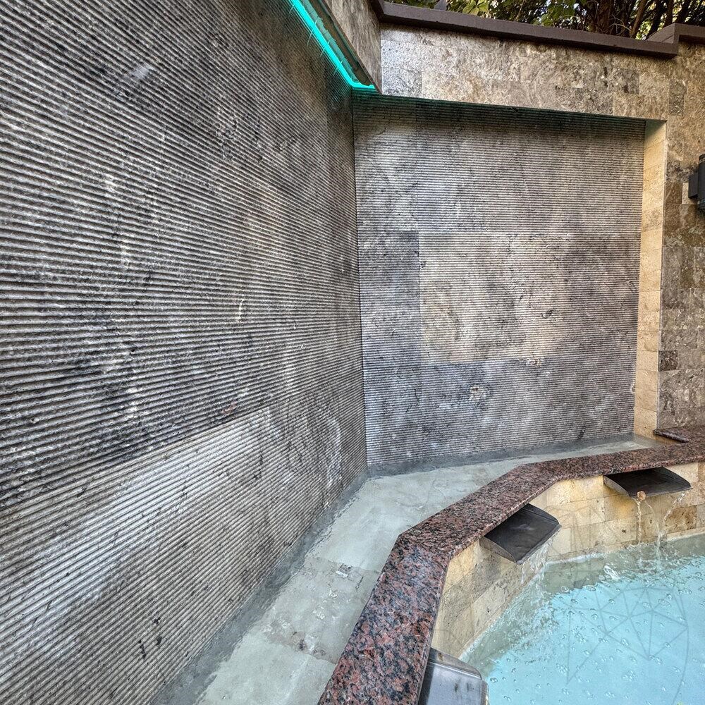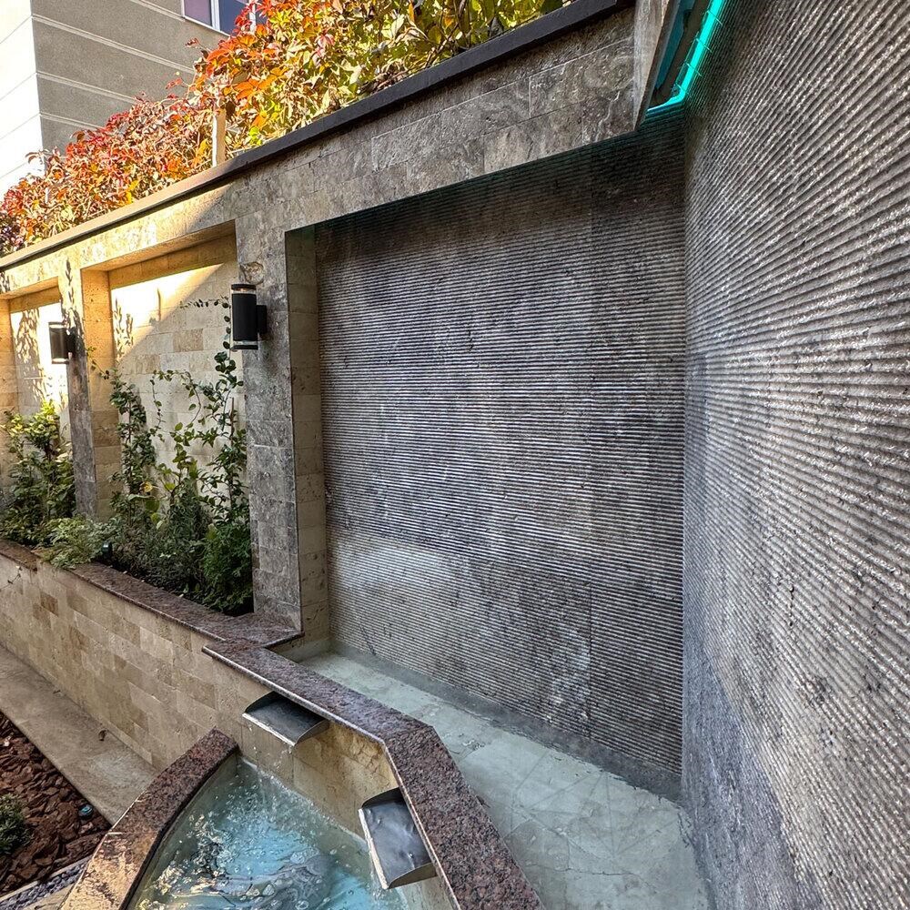 Sie wünschen sich etwas Einzigartiges? Probieren Sie den silberfarbenen, gemeißelten Travertin. Mit seiner zurückhaltenden Eleganz eignet sich dieser Travertin für Bereiche, in denen Kontraste und Harmonie im Vordergrund stehen.