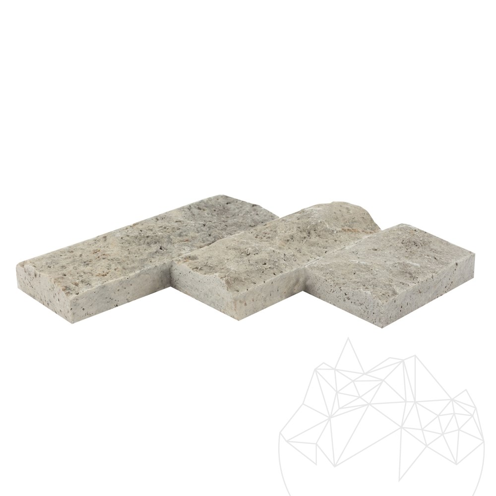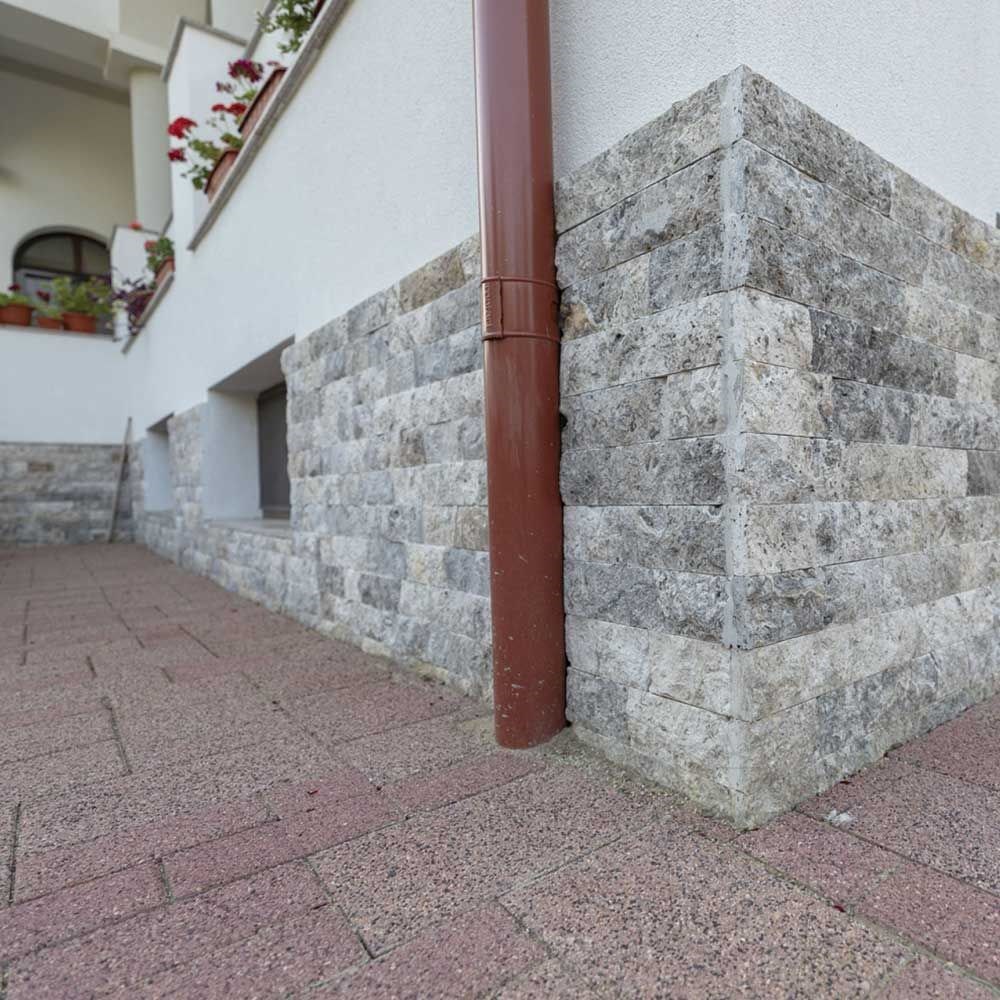 Der oben erwähnte silberne Travertin vereint reiche natürliche Details, die sich in einem modernen Projekt durch die raffinierte Erscheinung aus der Kombination von Grau- und Cremetönen auszeichnen. Diese Art von dekorativem Naturstein aus Travertin-Silber eignet sich sowohl für Außen- als auch für Innenverkleidungen in Räumen wie Fluren, Badezimmern und Küchen. Viele bevorzugen ihn jedoch bei der Herstellung der Schutzplatten hinter den Arbeitsplatten, da er eine klassische universelle Schönheit und hervorragende Beständigkeit aufweist.