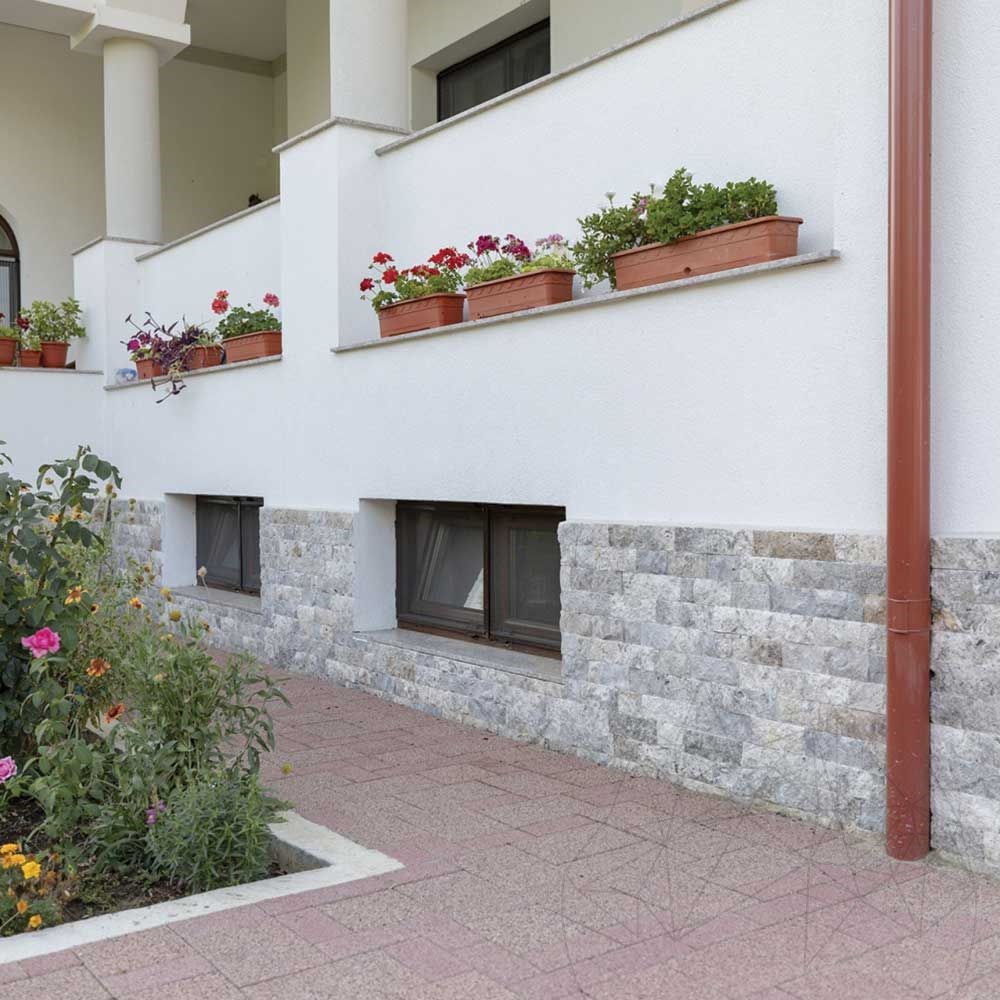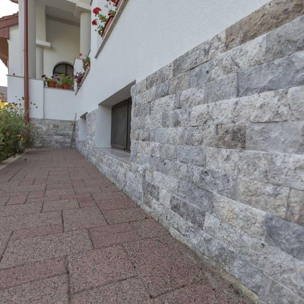 Die Verkleidung mit Naturstein verändert die Umwelt zu 100%, abhängig von der vorherrschenden Farbe des Steins. Beispielsweise ist der zerkratzt Silber-Travertin ein Produkt, das sich durch seine konstante Farbe auch auf großen Flächen auszeichnet. Die für dieses Material verfügbaren Breiten betragen 7,5 cm bei einer Dicke von 2,2 cm, und die Länge ist frei (L. L.), wobei jedes Stück eine andere Länge hat. Diese Längenunterschiede verleihen dem Gesamtbild nach der Montage eine besondere Schönheit, die ohne große Schwierigkeiten durchgeführt werden kann.