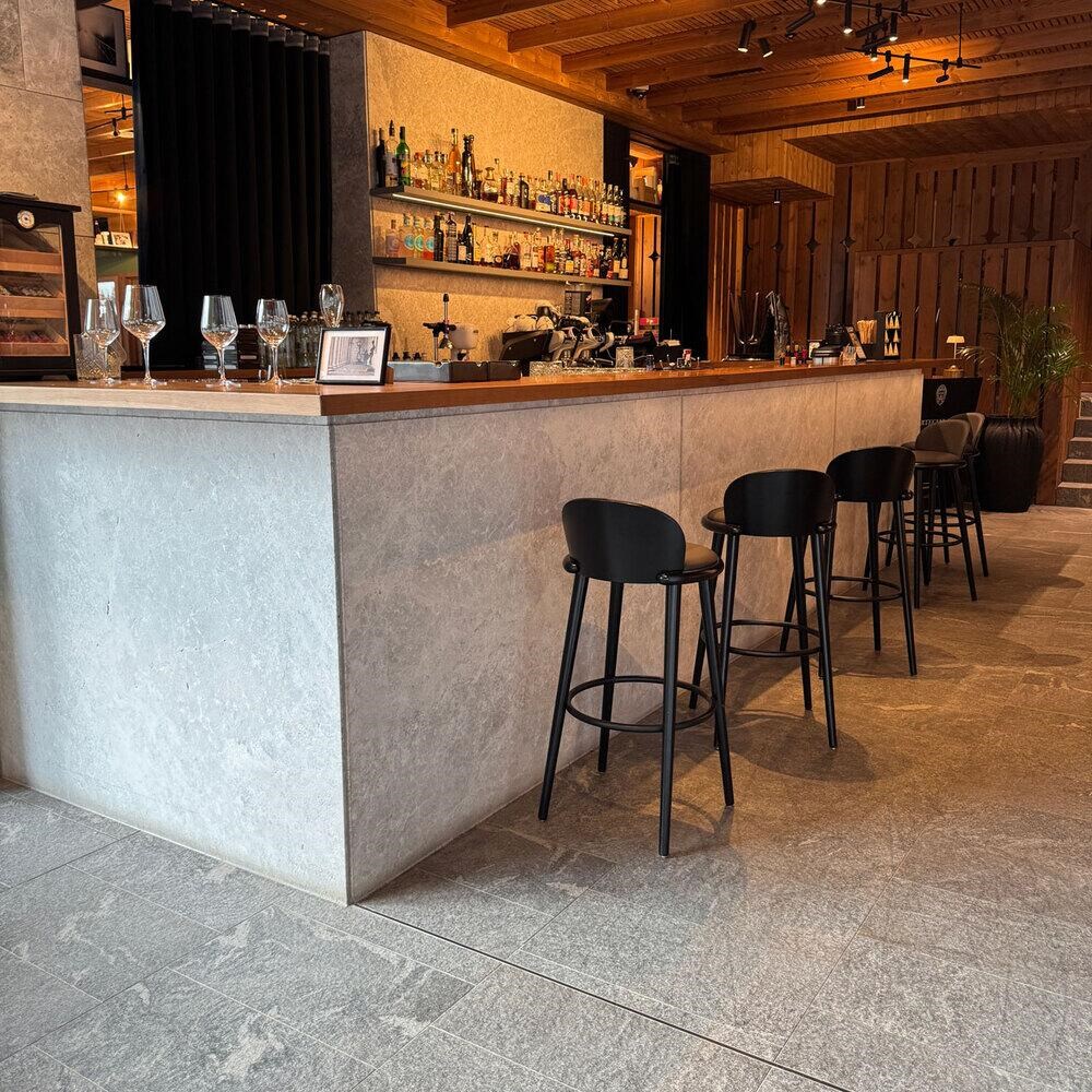 Sinterstein ist ein innovatives Material, das durch einen komplexen Hochtemperatursinterprozess (über 1200°C) gewonnen wird. Dabei wird eine Mischung aus natürlichen Mineralien ohne den Einsatz von Harzen oder chemischen Zusätzen verdichtet. Das Ergebnis ist eine extrem harte, gleichmäßige Platte mit überlegener Widerstandsfähigkeit gegen Abnutzung, Frost-Tau-Zyklen, UV-Strahlen und chemische Einflüsse. Im Gegensatz zu Naturstein erfordert es keine Schutzbehandlungen oder Versiegelung, bietet minimalen Wartungsaufwand und konstante Langzeitleistung, ohne Farbveränderungen oder Schäden durch Witterungseinflüsse.