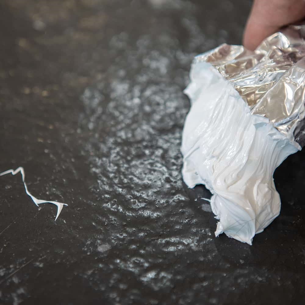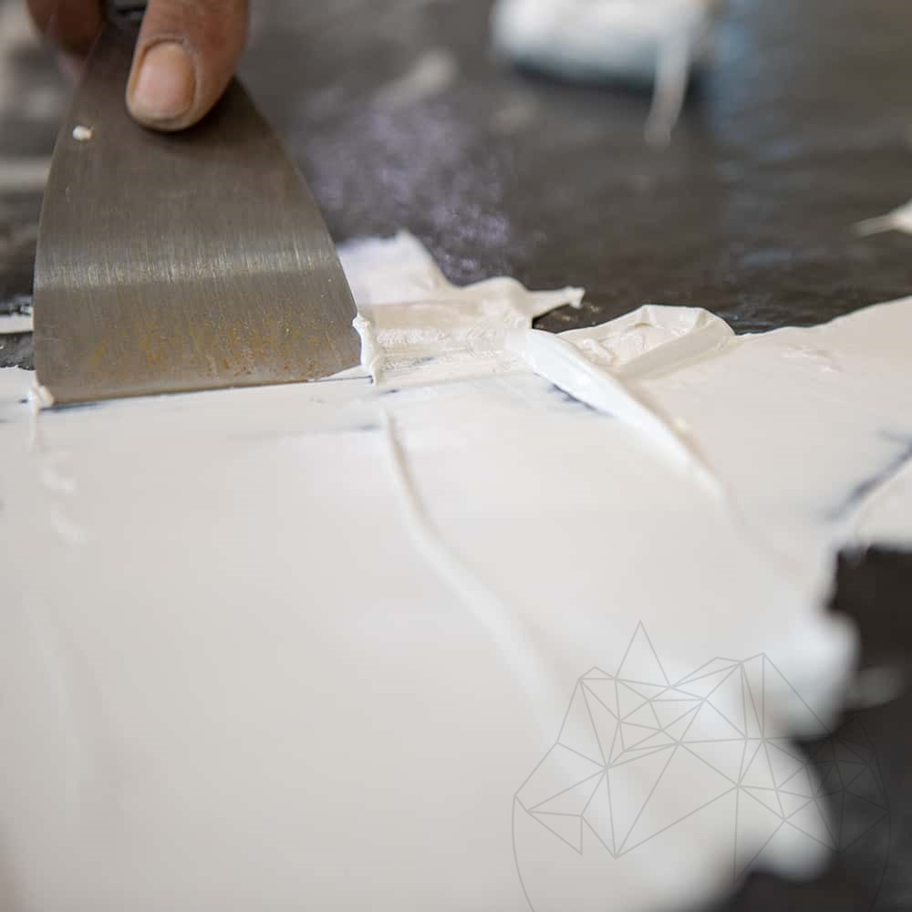 - Dieser wird auf einer starren, sauberen, trockenen Oberfläche, ohne Staub und Fett, aufgetragen, die keine Farbreste, alte Klebstoffe, Wachs, Zement, Öle und andere Verunreinigungen enthält