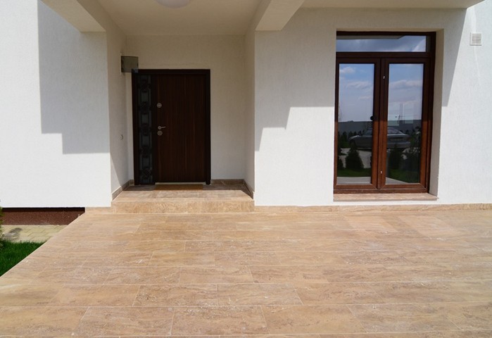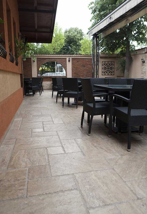 Wenn Sie nach einem Naturstein für die Pflasterung Ihrer Terrasse suchen, sollten Sie Travertin als eine der effektivsten Lösungen in Betracht ziehen: Es ist eines der beliebtesten Materialien, dank seiner Eigenschaften: es ist langlebig, mit einem warmen, eleganten Aussehen . Die für den Außenbereich empfohlenen Travertinfliesen sind dicker (3 cm) und müssen für eine längere Lebensdauer imprägniert werden. Hier sind unsere empfohlenen Arten von Travertinen für ein solches Dekorationsprojekt: