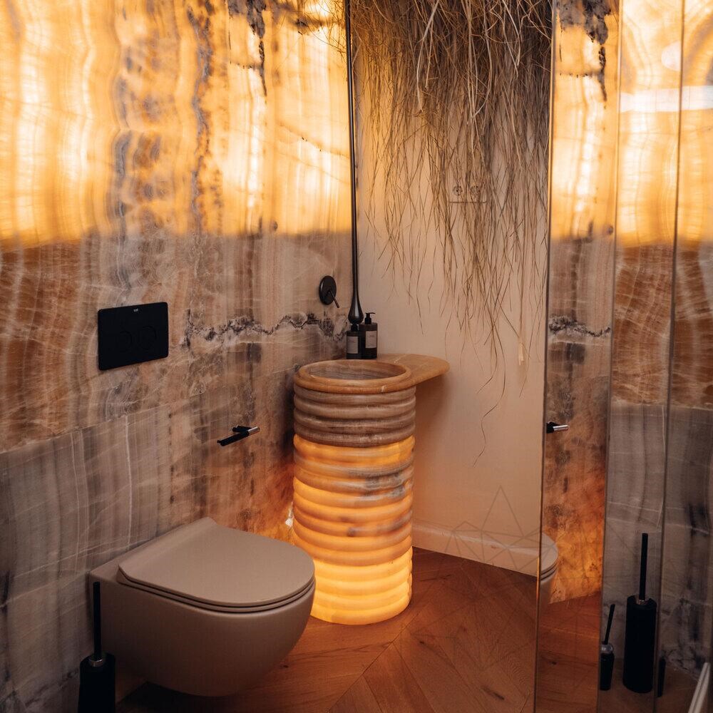 Schon seit Tausenden von Jahren geschätzt und bereits im alten Ägypten und Rom zur Herstellung von Ziergegenständen und Schmuck verwendet, verbindet Onyx traditionelle Schönheit mit modernen Anwendungen. Fortschrittliche Bearbeitungstechniken ermöglichen die Erstellung von maßgeschneiderten und detaillierten Arbeiten und bewahren gleichzeitig die Traditionen der Steinbearbeitung. Tiger-Onyx, mit seinen lebhaften Farben und der transluzenten Textur, wird besonders für seine natürliche Schönheit und den luxuriösen Effekt geschätzt, den er jedem Raum verleiht, und macht ihn zu einem Spitzenmaterial für Designer und Architekten, die auf der Suche nach einem exklusiven Produkt für die Inneneinrichtung sind.
