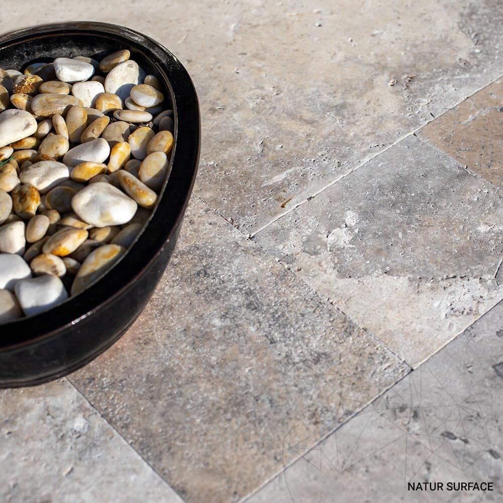 Silber ist sehr subtil travertin und eine natürliche Ergänzung für Ihr Dekorationsprojekt. Aufgrund der verlängerten Haltbarkeit in Gefrier-/Tauzyklen ist ideal für HoReCa, Wohn-, Innen- und Außenbereich.