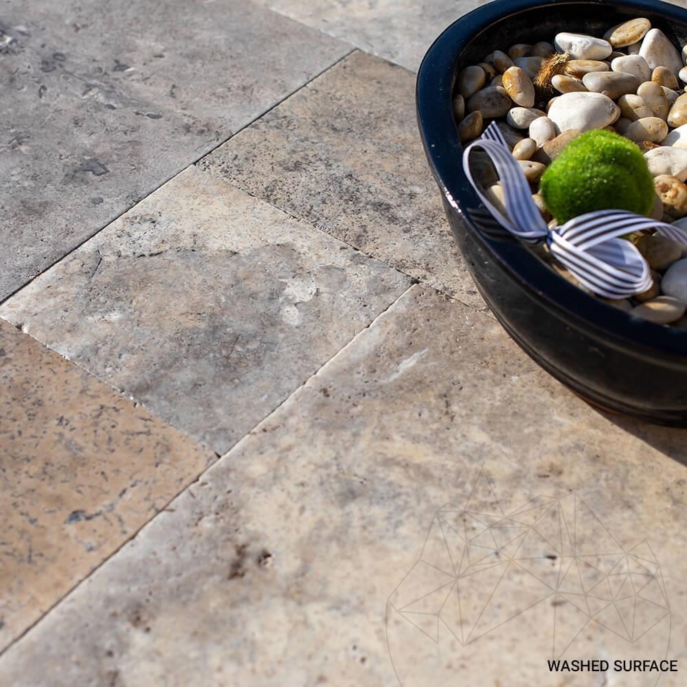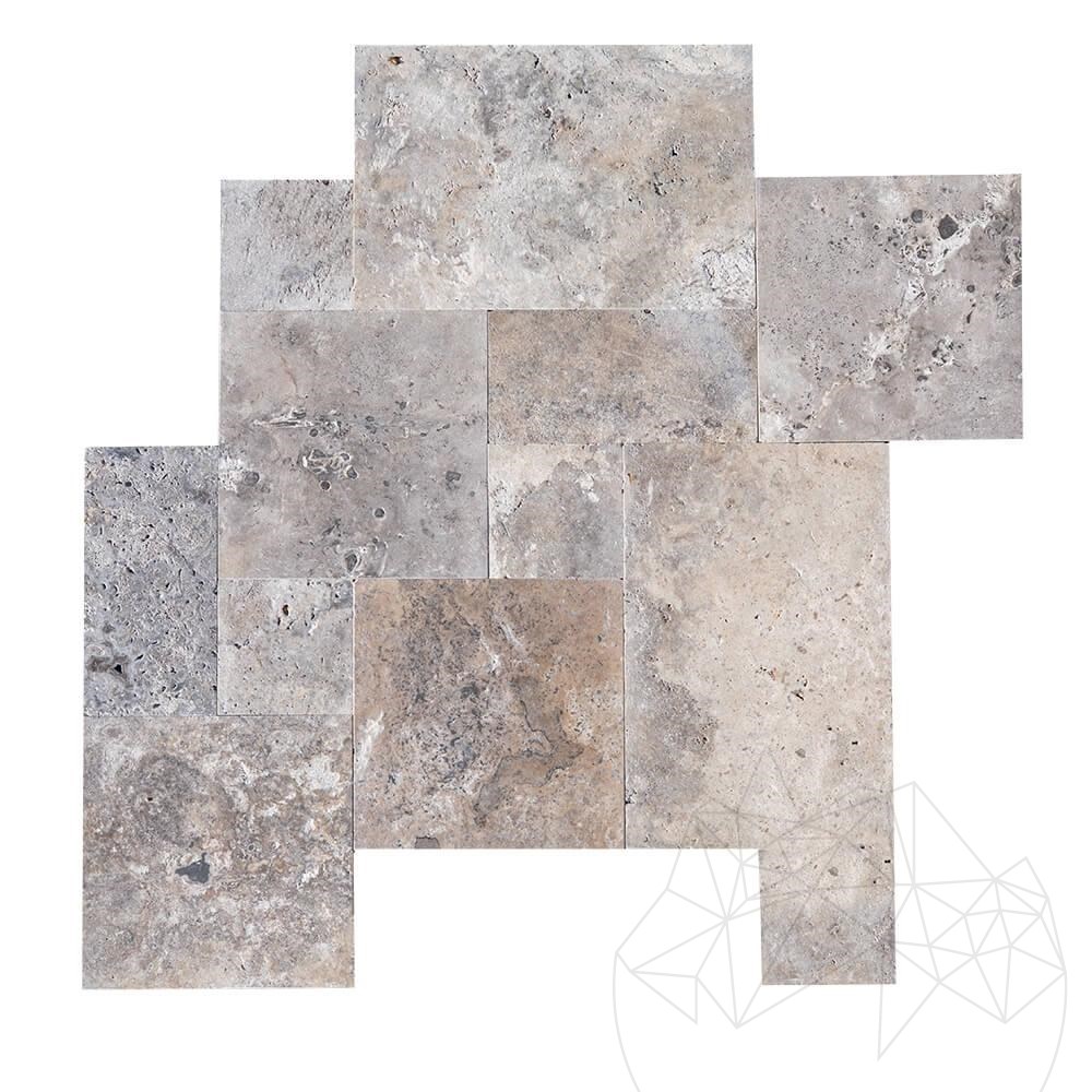 Das 1,2 cm dicke French Pattern Set eignet sich perfekt für Innen- und Außenböden. Silver Cross Cut Travertin mit gebürstetem Finish vermittelt eine leichte Dosis archaischen. Daher das ideale Material für moderne, klassische und traditionelle rumänische Designstile.