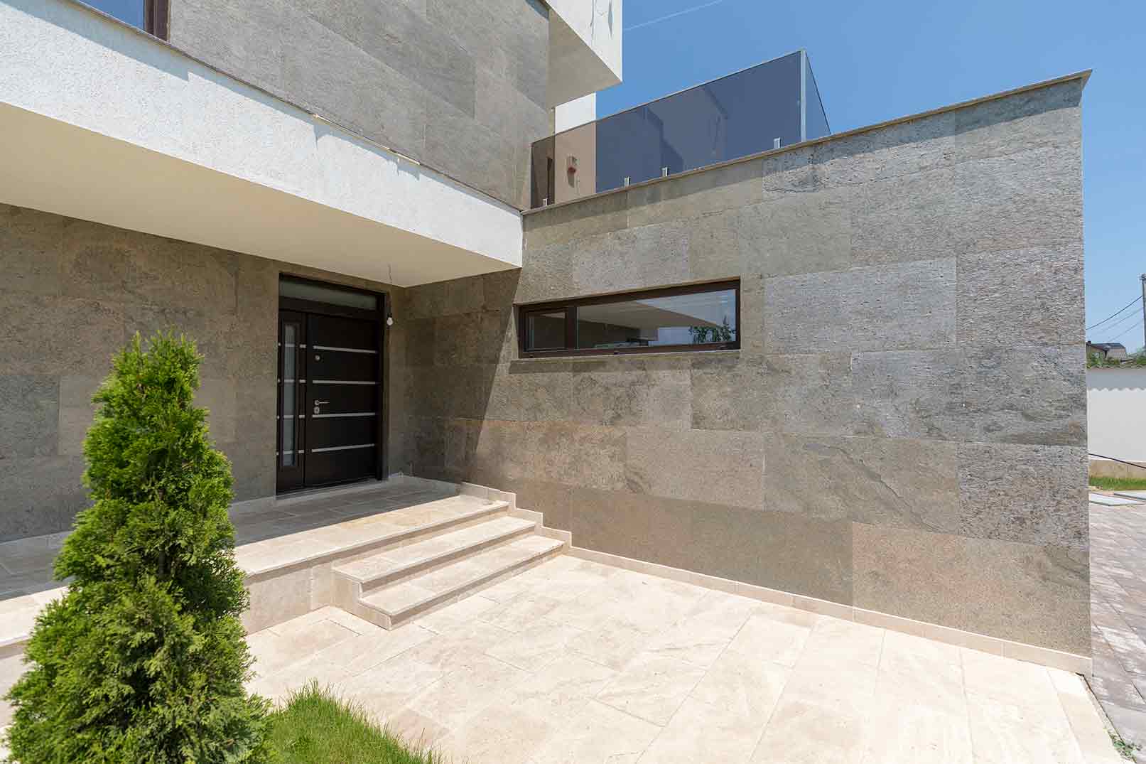 Ein metamorphes Gestein, bestehend aus Ton, mit natürlicher Spalteigenschaft. Mit einem Härtewert von 6-7 auf der Mohs-Skala wird SKIN Flexible Slate für Innen- und Außendekorationsprojekte verwendet. Flexibler Schiefer ist als Platten mit einer durchschnittlichen Dicke von 1,5 mm erhältlich. Die SKIN Slate-Platte wird auf einer Basis befestigt, die aus glasfaserverstärktem PVC oder baumwollverstärktem PVC besteht.
