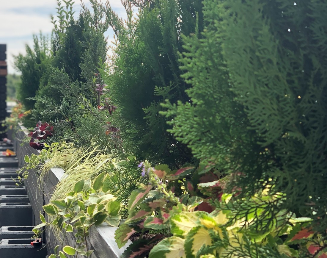 DG: Meistens suchen wir nach Pflanzen mit immergrünen Blättern, also Pflanzen mit immergrünen Blättern. Hier können wir Photinia platzieren. Natürlich gibt es auch Nadelbäume. In den letzten Jahren wurde viel Thuja verwendet, die keine so robuste Pflanze ist, und es gibt viele andere nachhaltigere Optionen, wenn wir über Bewässerung, Wassermenge und die Notwendigkeit des Beschneidens sprechen.