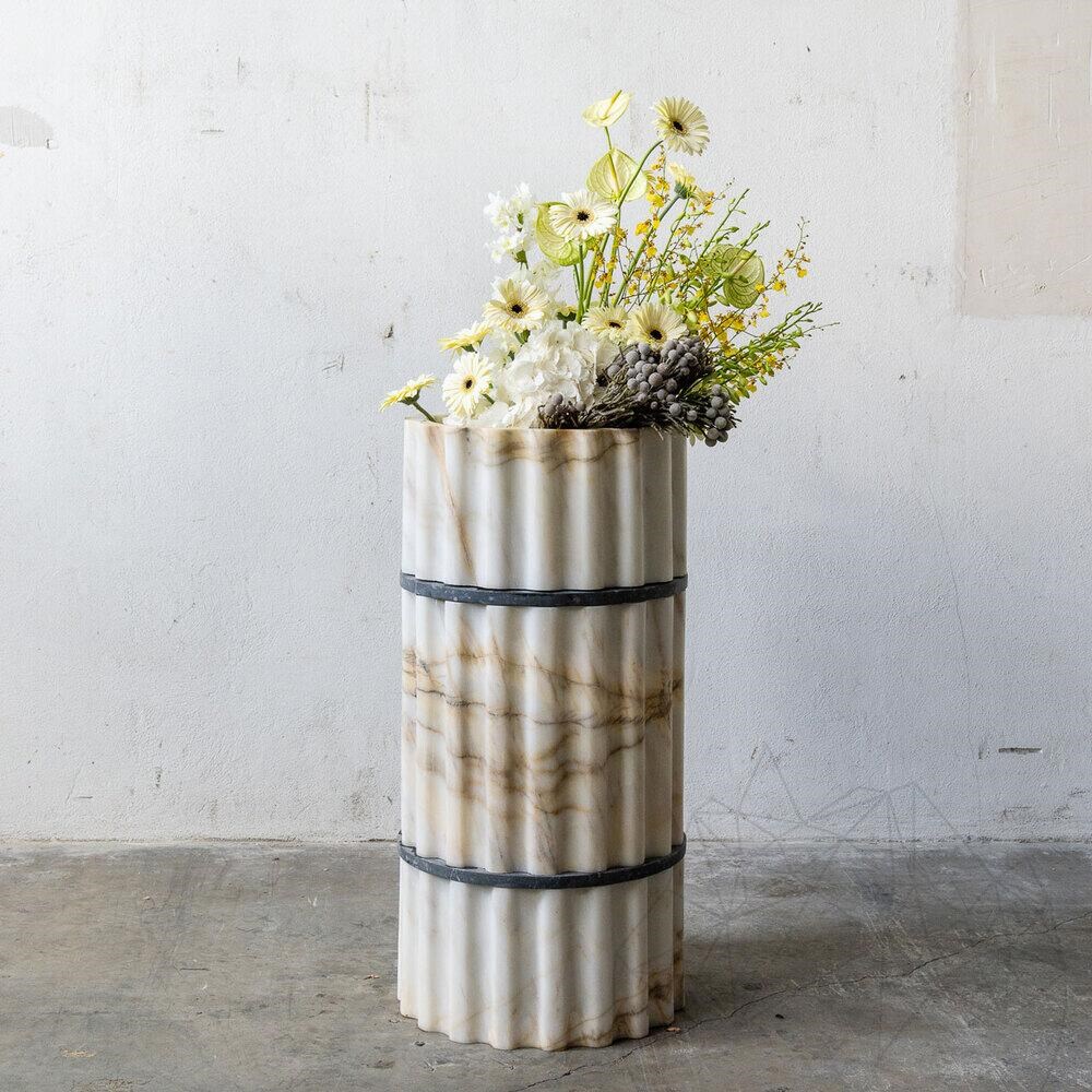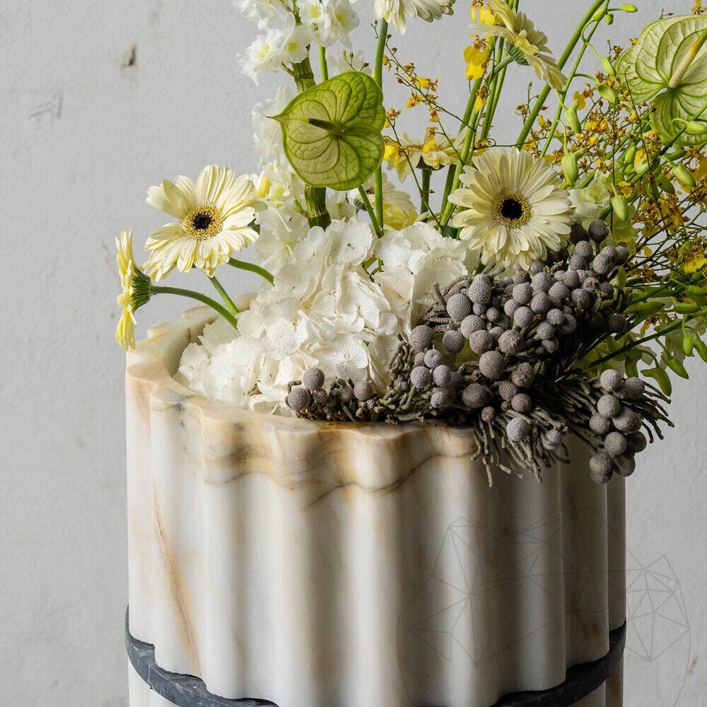 Das Arabescato Marmor Waschbecken mit geriffeltem Finish ist eine elegante Wahl für Ihr Badezimmer. Dieses freistehende Waschbecken besticht durch seine einzigartige Maserung und die cremefarbene Oberfläche, die jedem Raum einen Hauch von Luxus verleiht.
