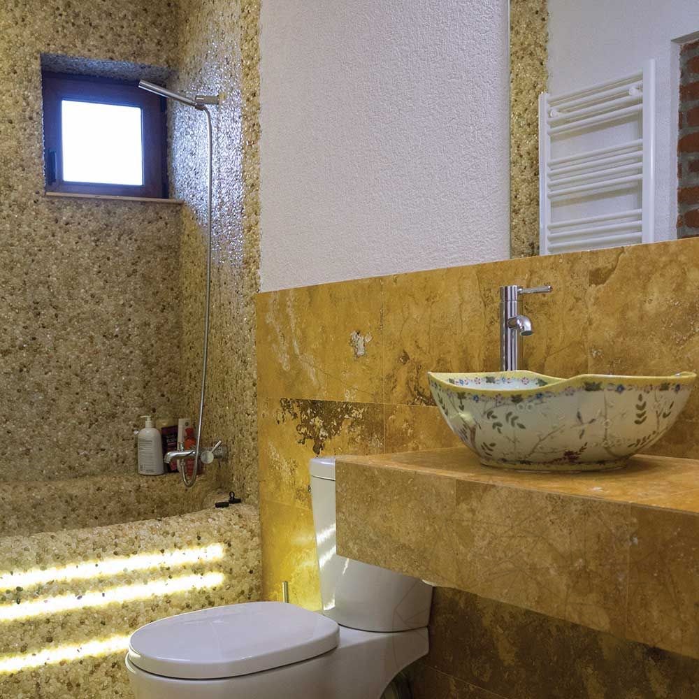 Wenn es um Umweltdesign geht, können Travertinfliesen leicht zum Blickfang jeder Dekoration werden. Dieser gelbe Cross Cut Travertin kann im Innenbereich in Badezimmern, Küchen, Wohnzimmern, Büros, Fluren usw. sowohl im privaten als auch im öffentlichen Bereich verwendet werden. Je nach Designkonzept können Sie dieses Produkt auch für Verkleidungen, Pflaster, Stufen, Kamine usw. wählen. Im Außenbereich kann er Fassaden, Zäune, Rahmen, Sockel usw. prägen. Der geschliffene gelbe Cross Cut Travertin eignet sich gut für ein modernes Design mit sanften, klassischen Akzenten. Seine ansprechende Optik verdankt er seiner einzigartigen Textur – ein typisches Merkmal des gelben Travertins.